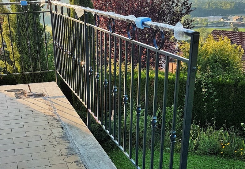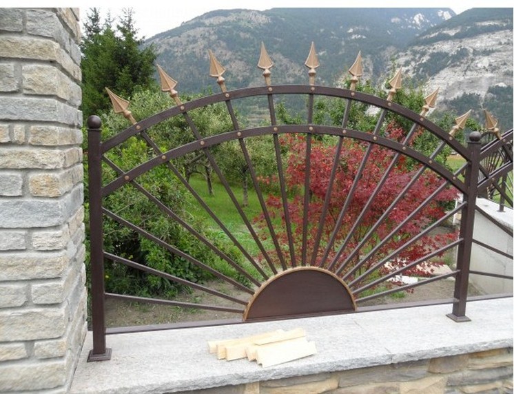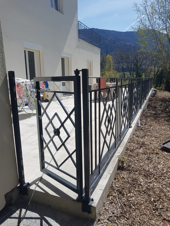 Pour nos clients Suisse profitez de nos réalisations en fer forgé de fabrication artisanale avec un tarif compétitif et à la portée de votre budget ! Consultez-nous pour toutes demandes complémentaires ! Ce modèle de style gothique a été réalisé et adapté au terrain pour notre client en Suisse dans le canton du Valais.