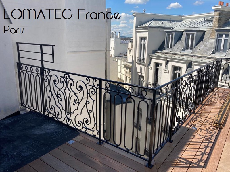 Nos garde-corps et clôtures fer forgé sur Paris et Île de France, éléments de sécurité pour vos balcons et terrasses vous sont réalisés avec du sur mesure par Ferronnerie LOMATEC France qui vous assure la pose.