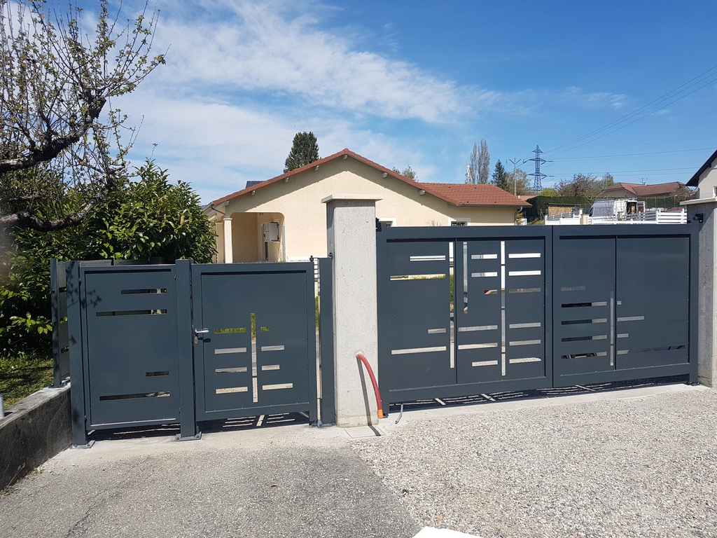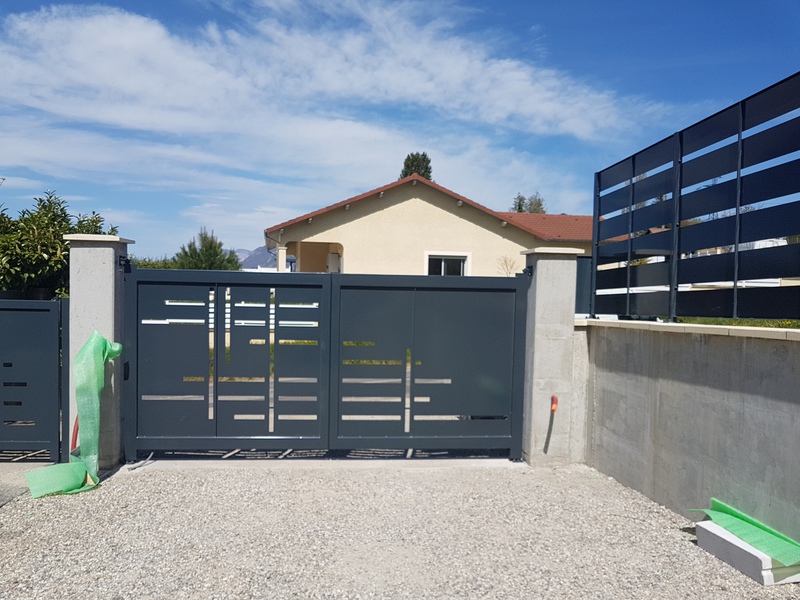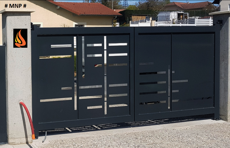 Nos portails au style contemporain avec design sont en acier. Nous pouvons vous les concevoir en battants ou en coulissant. Plusieurs teintes sont possibles et restent à votre choix au cas où vous retenez cette option.